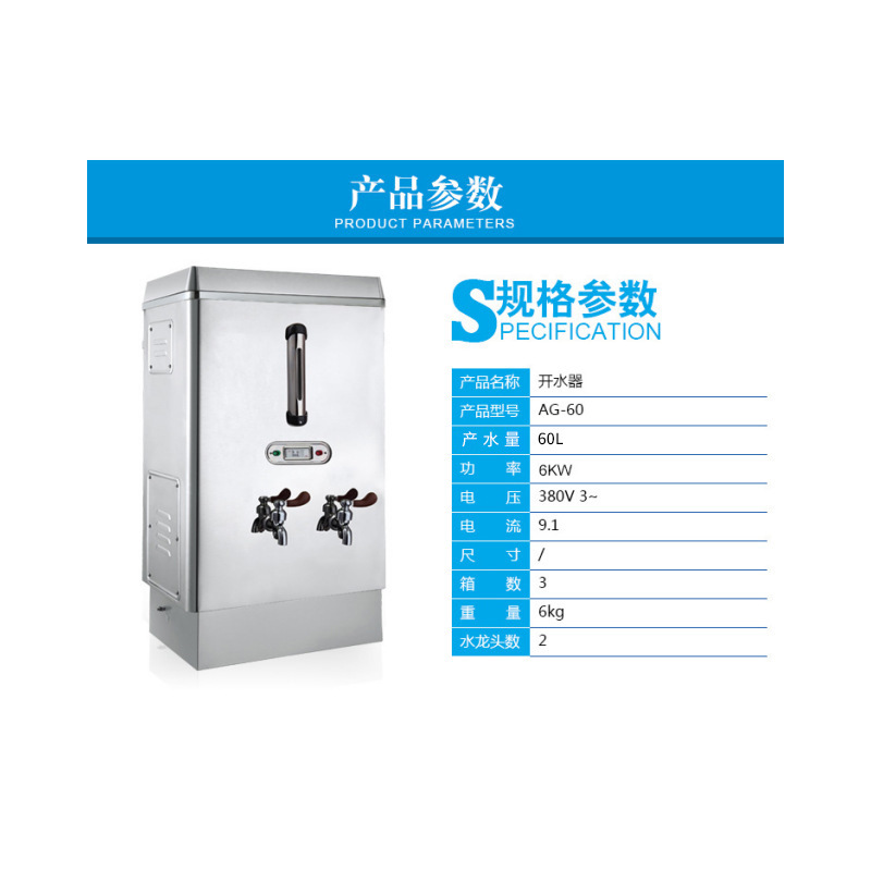 - 商品:现货60型不锈钢饮水机双龙头电热开水器商用节能开水机校园全自动