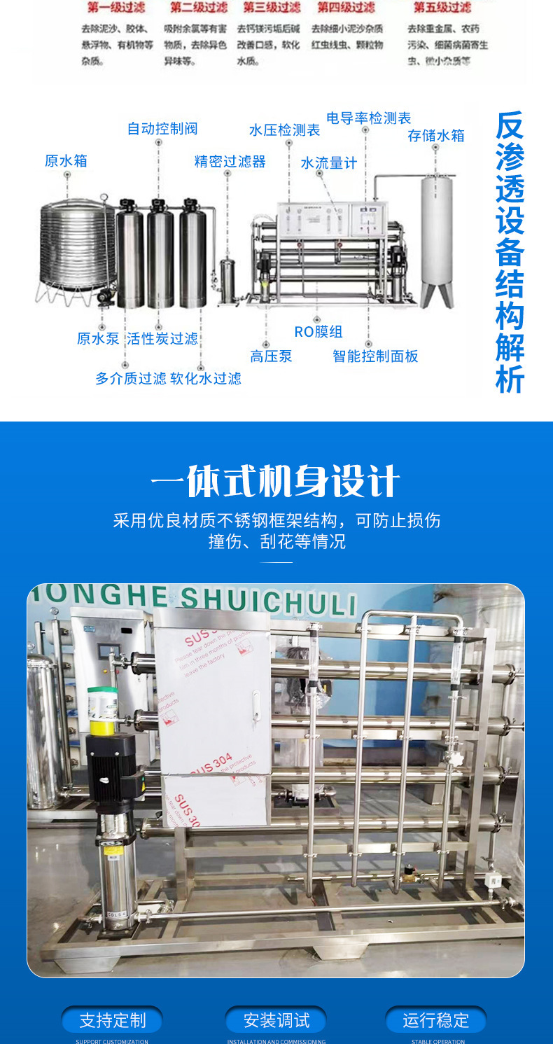 - 大型不锈钢反渗透设备纯净水饮用水设备纯水机家用饮水器
